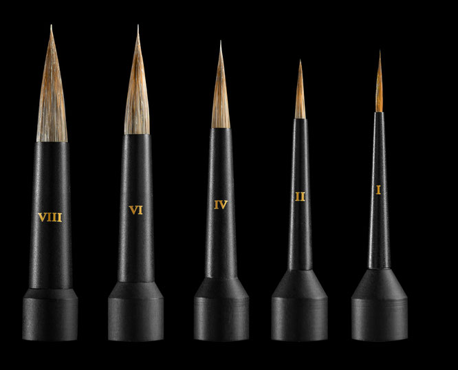Unser Malfarbenpinsel besteht aus Kolinksky Haar, welches für eine lange Lebensdauer, hohe Elastizität und besonders durch die sehr feinen, am Ende fast transparenten Spitzen bekannt ist.